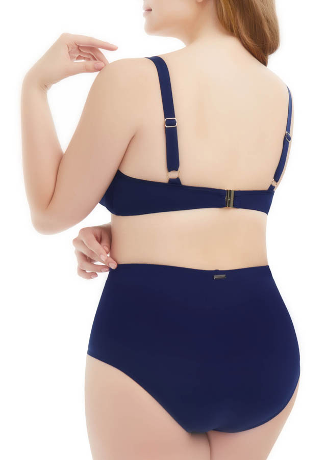 Формованная чашка на каркасной поддержке. Съемные вкладыши «push-up» для размеров 40-42 CD. На передней детали аксессуар. Регулируемые бретели. Застежка сзади.