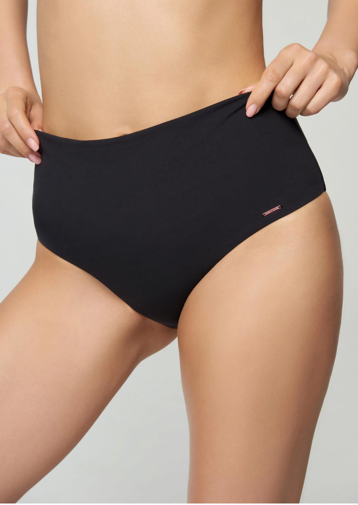 Купальные трусы выполнены из мягкой эластичной ткани, которая дарит ощущение максимального комфорта в течение всего дня. Благодаря оригинальному крою, брифы прекрасно подойдут на любую фигуру. За счет широкого пояса-отворота можно регулировать высоту линии талии, что дает возможность носить эту модель в двух вариантах: со средней и завышенной посадкой. Классические черные купальные трусы плотно прилегают к телу, а инновационный материал, который используется при пошиве изделия, быстро сохнет, не теряет яркости и не выгорает на солнце.