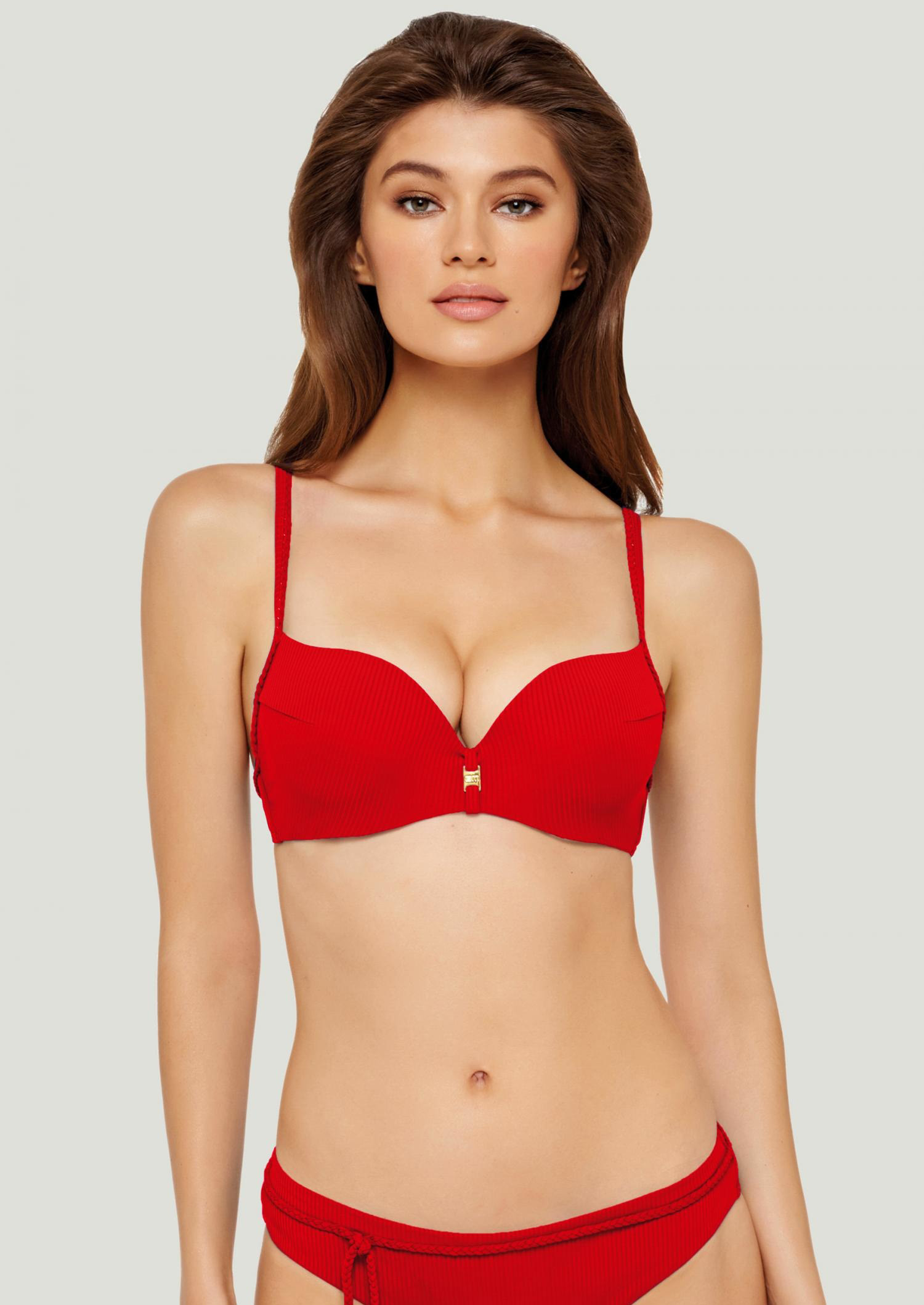 Формованная чашка со съемными корректорами «пуш-ап». Регулируемые бретели фиксируются на спине. Застежка на спине.